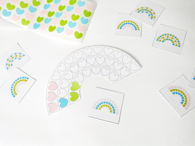 Découper les arcs-en-ciel et les cartes « modèles ».