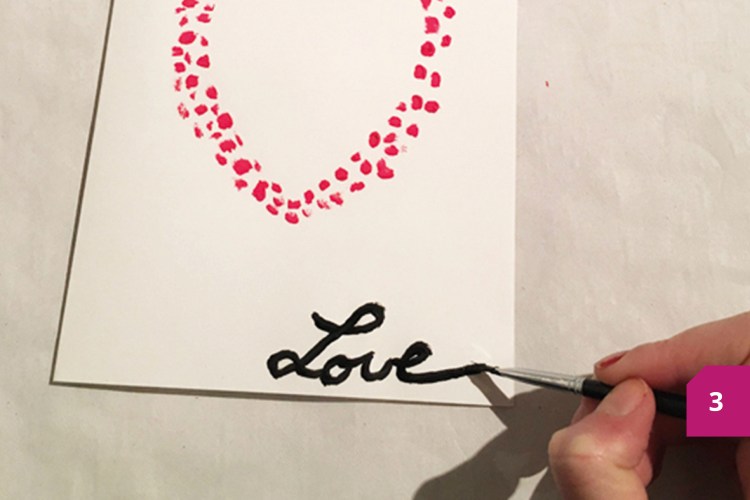 Etape 3 : Avec la peinture et le pinceau écrire « Love » au bas de la carte.