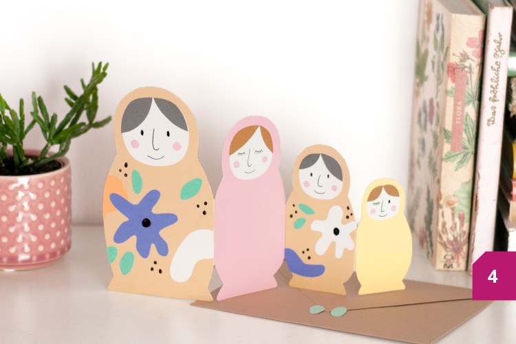 Etape 4 : Plier la Matriochka et l’insérer dans une enveloppe. Il ne reste plus qu’à l’offrir à la plus jolie des mamans !