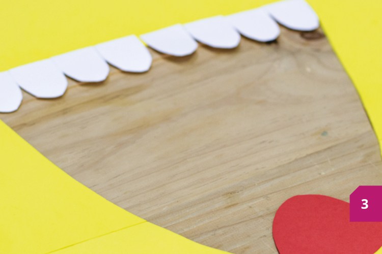 Etape 3 : Maintenant, coller les dents et la langue sur la mousse caoutchouc avec la colle, pour obtenir ce qui est montré sur l’image.
