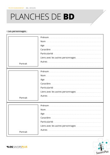 • Les personnages : il faut dresser une carte d’identité des personnages qui appraitront dans la BD. Traits physiques, caractères, liens entre les personnages…