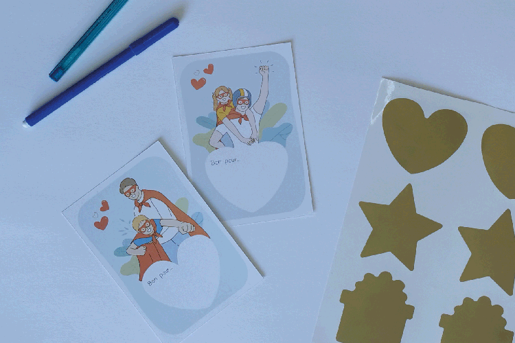 Coller la gommette à gratter sur l’emplacement « cœur ».