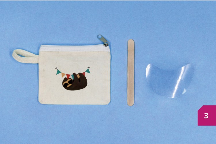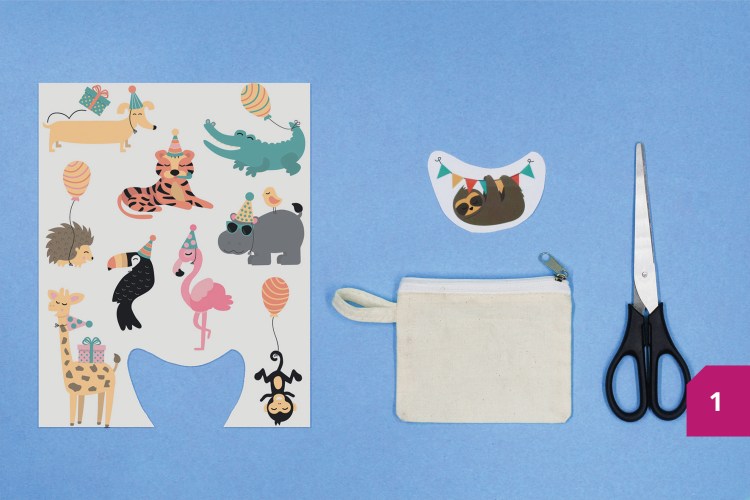 Etape 1 : Choisir un animal sur la planche de décalcomanies textile. Se munir du porte-monnaie en coton.