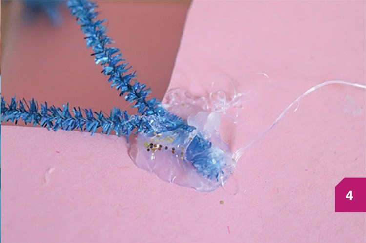 Etape 4 : Créer les antennes à l’aide de fil chenille et de deux pompons. Les fixer au sommet du papillon avec de la colle en pistolet. Découper tout autour.