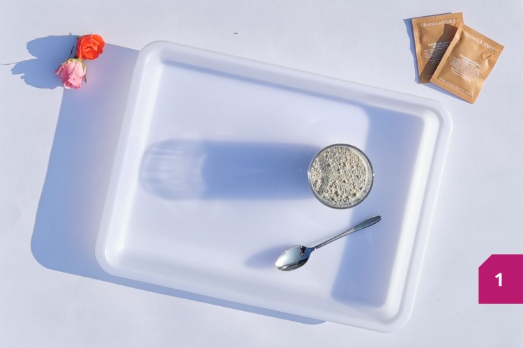 Etape 1 : Dans le bac d’activité, déposer deux doses d’argile verte.