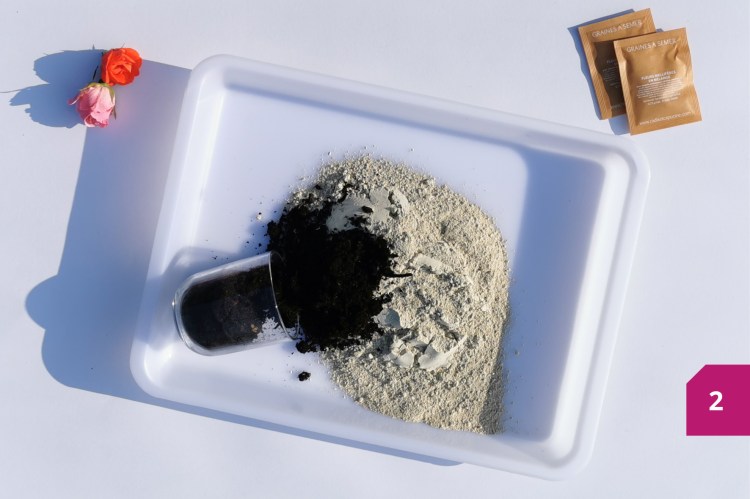 Etape 2 : Ajouter deux doses de terreau et mélanger.