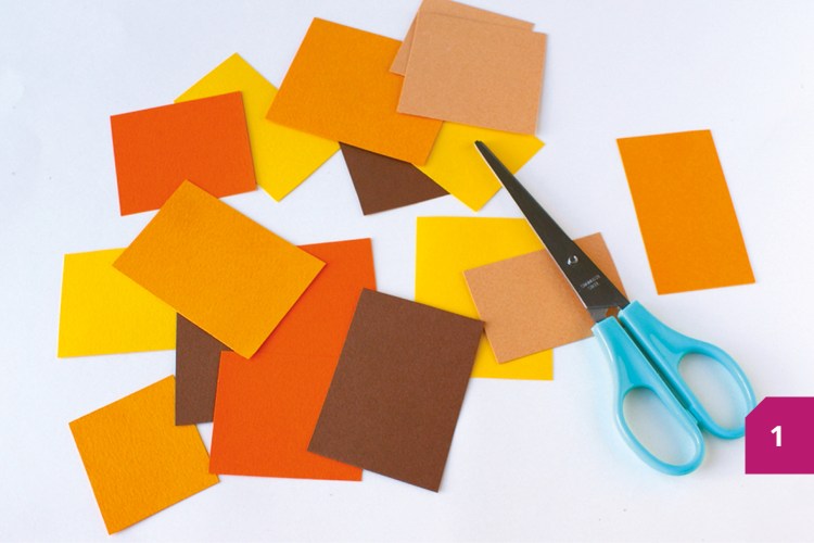 Etape 1 : Découper des carrés et rectangles de tailles aléatoires dans les papiers de couleurs.