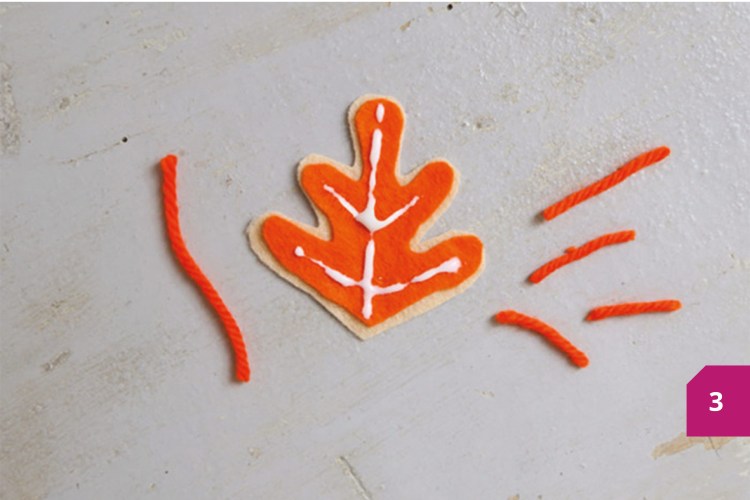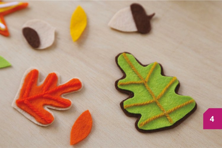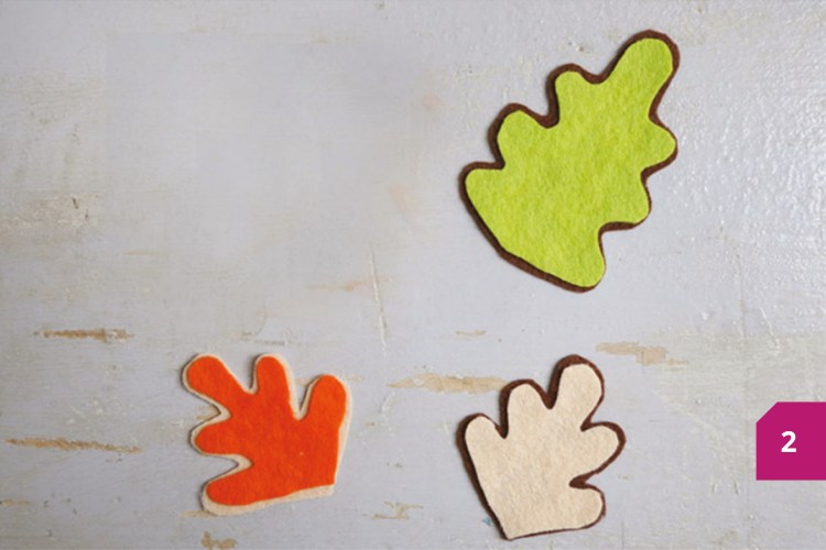 Etape 4 : Voilà des feuilles vraiment représentatives de cette saison colorée ! Une fois de plus, la feutrine permet de faire des merveilles rapidement.