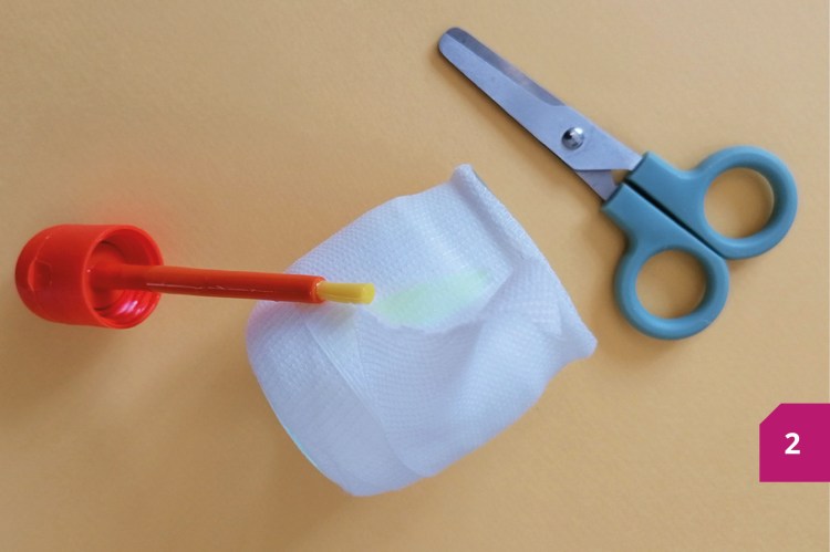 Etape 2 : Enrouler de bande de gaze, couper et coller.