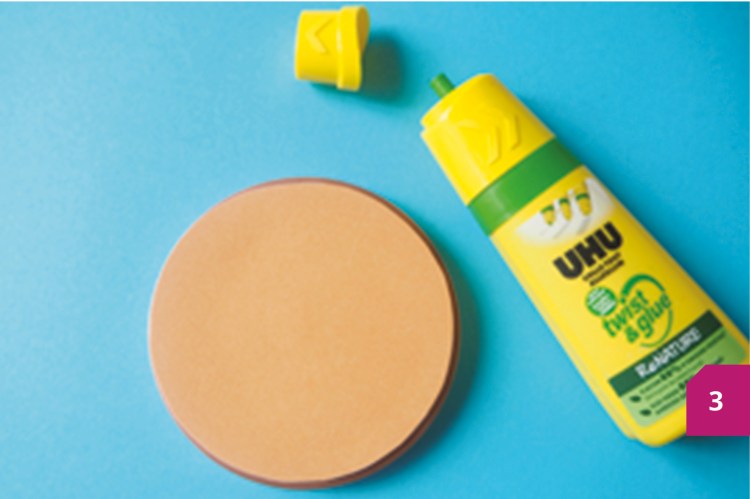 Etape 3 : Tracer la forme du couvercle sur le papier orange. Découper la et coller la sur le couvercle avec la colle Twist & Glue.