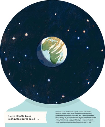 Magnifiquement illustré, ce tout-carton permet aux jeunes enfants de découvrir l’incroyable diversité des paysages terrestres, tout en écoutant un texte simple et poétique, qui lui sera lu à haute voix. De petits textes documentaires complémentaires invitent les jeunes lecteurs à réfléchir à ce qui les entoure : le propos devient alors plus proche d’eux, sur une toile de fond globale. Cet instructif hommage à la Terre donnera envie aux enfants d’en savoir plus sur leur planète et leur permettra de commencer à se sentir concernés par le monde dans lequel ils vivent.
