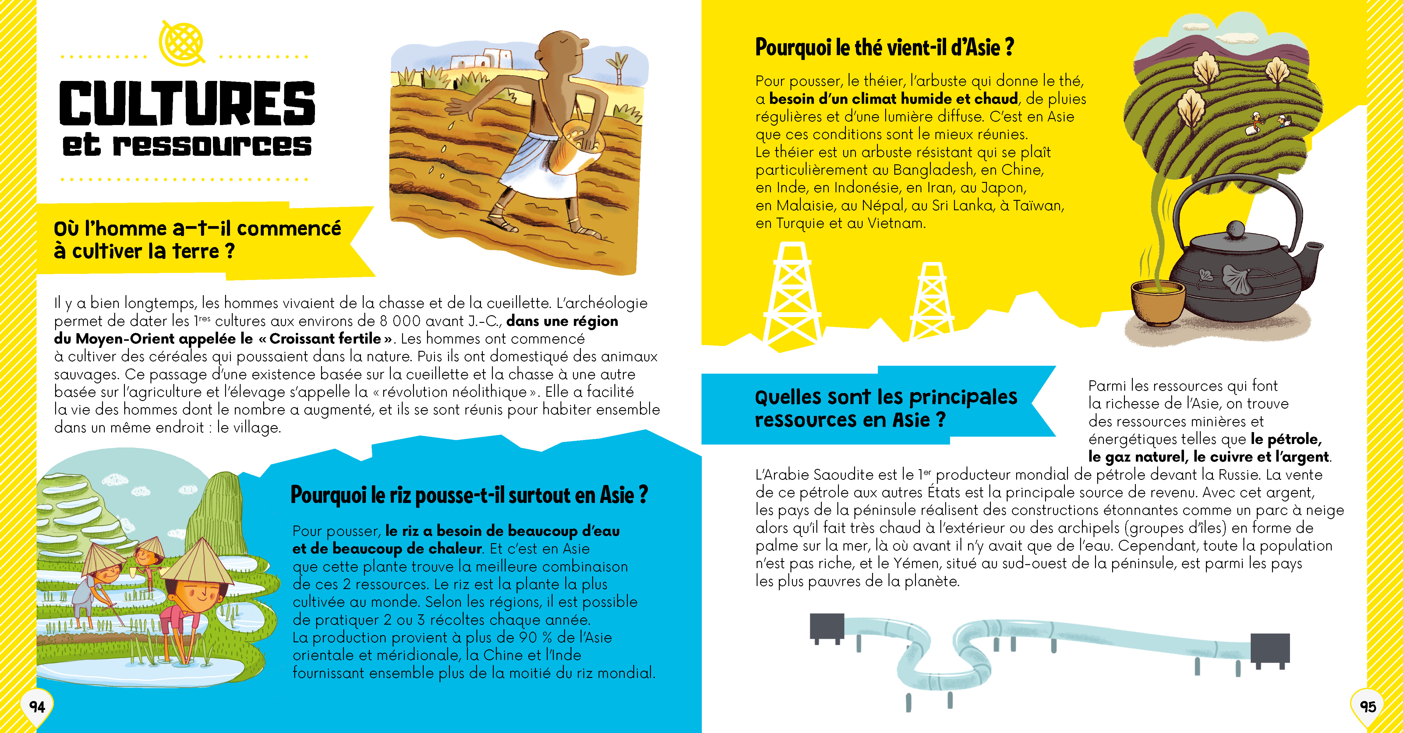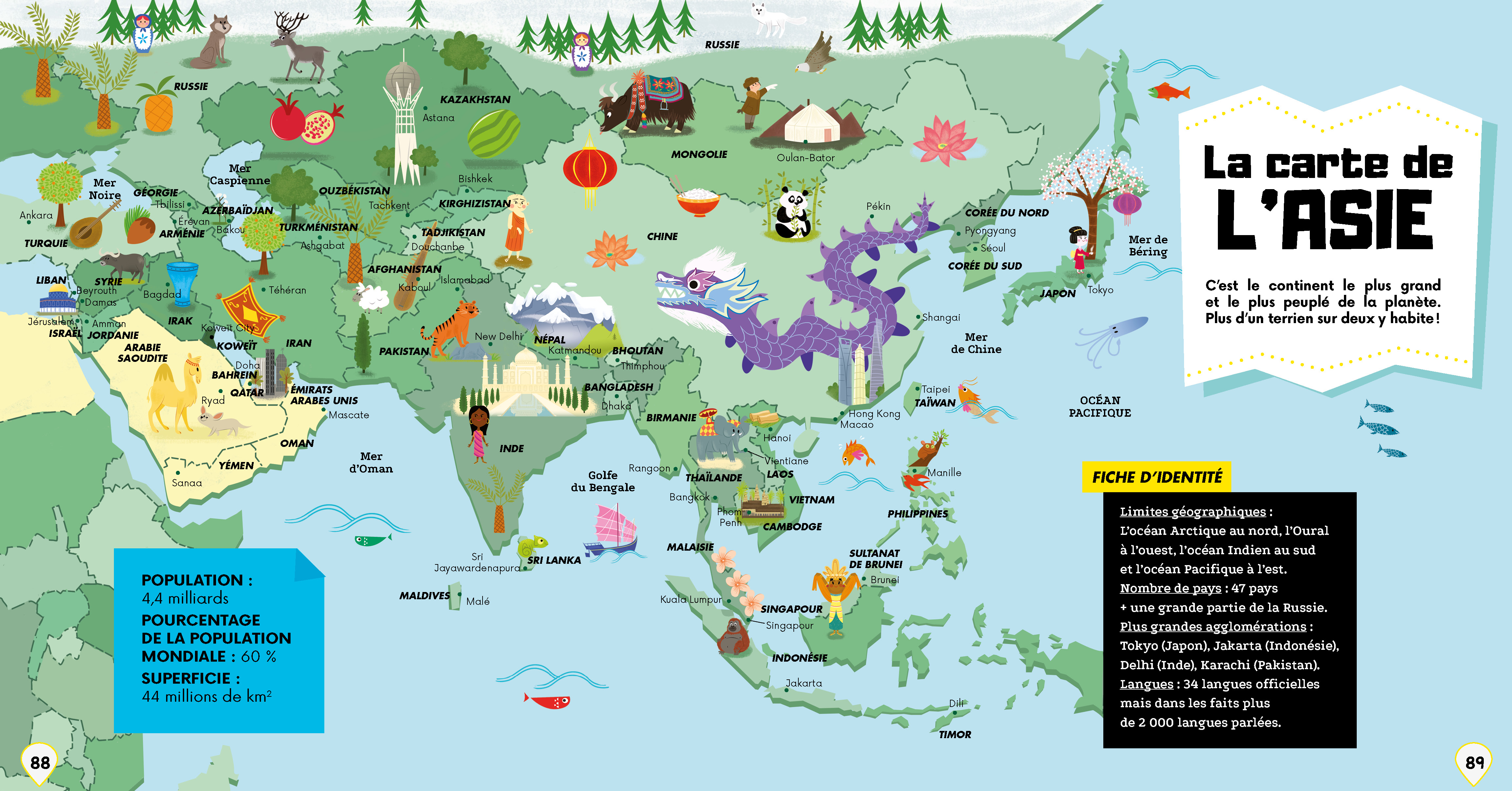 Combien y a-t-il de langues dans le monde ? Dans quel pays vit-on le plus vieux ? Pourquoi la mer Morte porte-t-elle ce nom ? Quel est le plus haut sommet du monde ? Un nouveau Dis pourquoi pour explorer et interroger le monde à destination de tous les petits curieux ! À travers des réponses simples et concises, et 6 grandes cartes illustrées, l’enfant découvre les particularités de chaque continent. Pour aller plus loin, des jeux et des quiz pour tester ses connaissances tout en s’amusant.