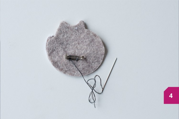 Etape 4 : Coudre le support pour broche à l’arrière du renard. En séchant, la colle textile donne de la tenue au tissu ce qui permet de fabriquer des broches assez grande sans que celles-ci ne s’affaissent lorsque vous les portez.
