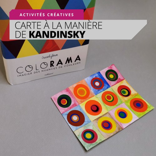 Etape 4 : C’est terminé ! En assemblant les cartes de plusieurs élèves, il est possible de réaliser une très jolie fresque. C’est l’occasion de débuter un travail sur l’œuvre de l’artiste Kandinsky.