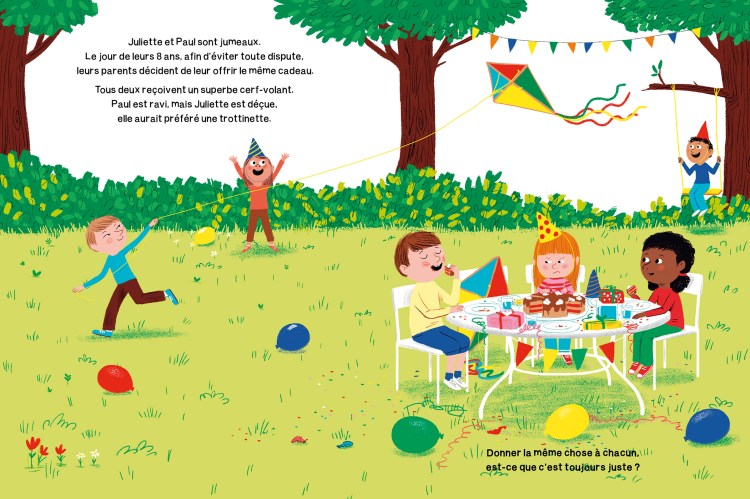 Par une série de questionnements, voici un livre qui aide l’enfant à réfléchir aux notions d’égalité, d’équité et d’injustice et à élaborer peu à peu une pensée autonome.