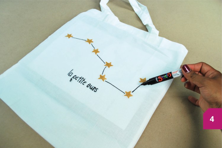 Etape 3 : Tracer les contours des étoiles et les colorier avec le marqueur acrylique.