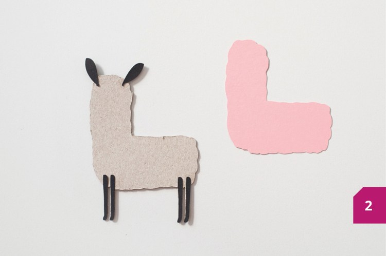 Etape 2 : Pour le lama, coller les oreilles et les jambes sur le carton avant d’appliquer le corps.