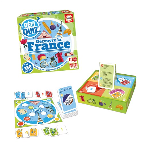 Plus de 380 questions en 4 catégories pour découvrir plein d’infos intéressantes et rigolotes. A chaque tour les joueurs doivent répondre aux 4 questions d’une carte (1 de chaque catégorie). Pour chaque réponse correcte le joueur remportera le nombre de points indiqué sur le jeton valise qui est posé sur son carton de points, sur la case correspondant à la catégorie de la question.