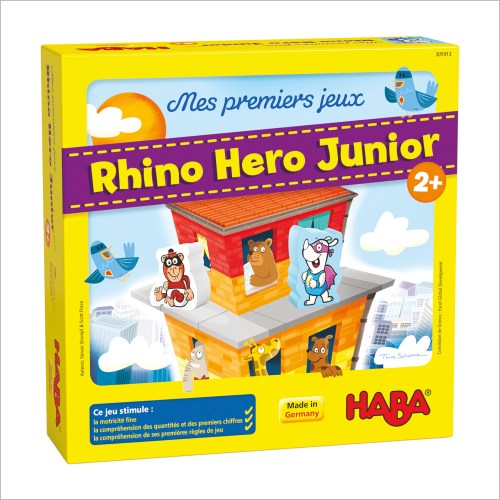 Rhino Hero Junior est un vrai super-héros, il va toujours plus haut en emmenant les petits explorateurs avec lui. Dans 3 jeux coopératifs différents, les enfants exercent leur motricité fine, leur mémoire, la compréhension des premiers chiffres et des quantités en classant et en empilant les étages. Une collection de 3 jeux d’adresse originaux sur le thème des super héros.