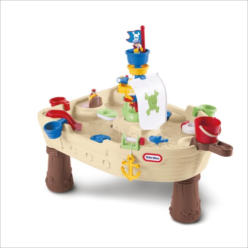 Jeu créatif et jeu actif se rencontrent dans cette table à eau (101,5×73,5×96,5 cm) sur le thème des pirates ! Jetez de l’eau du canon, créez des courants avec le spinner et éclaboussez. 2 personnages amusants, un requin qui jaillit et une fontaine d’eau courante garantissent des heures de plaisir en haute mer ! En plastique solide.
