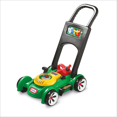 Cette tondeuse (53x28x51 cm) avec clé de contact et manette réglable permettra aux enfants de tondre comme les grands !? Les sons sont mécaniques (sans pile) : les billes sautent à mesure que l’enfant passe la tondeuse et il faudra tirer la corde pour entendre le bruit du moteur. Le bouchon de réservoir s’ouvre et les enfants pourront faire semblant de remplir la tondeuse avec le bidon d’essence inclus.