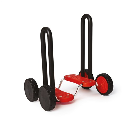 plancher est amovible pour que les plus grands se déplacent seuls et que les petits se fassent transporter en toute sécurité. Le cozy dispose d’un espace de rangement à l’arrière. Les roues tournent à 360°. Une structure robuste, idéale pour la vie en collectivité.