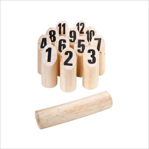 12 quilles en bois numérotées de 1 à 12, à faire tomber à l’aide du lanceur en bois. Une excellente façon de travailler les mathématiques et la motricité.