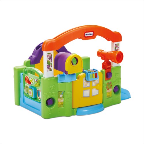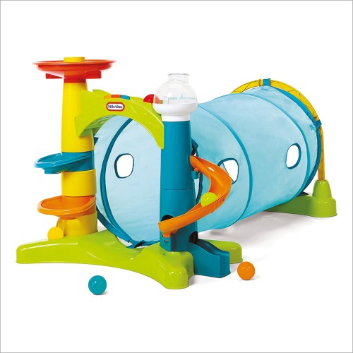 enfants de ramper mais également de jouer avec les 5 balles fournies en les faisant glisser dans les rampes prévues. Il joue des sons et musiques rigolotes et se referme pour le stockage.